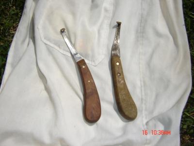 Hoof trimming knives are usually available from most well stocked agro veterinary shops but if not so, any good sharp knife can assist. In addition to hoof trimming knives professional hoof trimmers will also make use of more sophisticated tools like a hoof pincer (for clipping the dew claws), hoof shears (for cutting overgrown edge of the claw), toeing knife and a hoof rasp. Electric angle hoof grinders are available in Europe.
