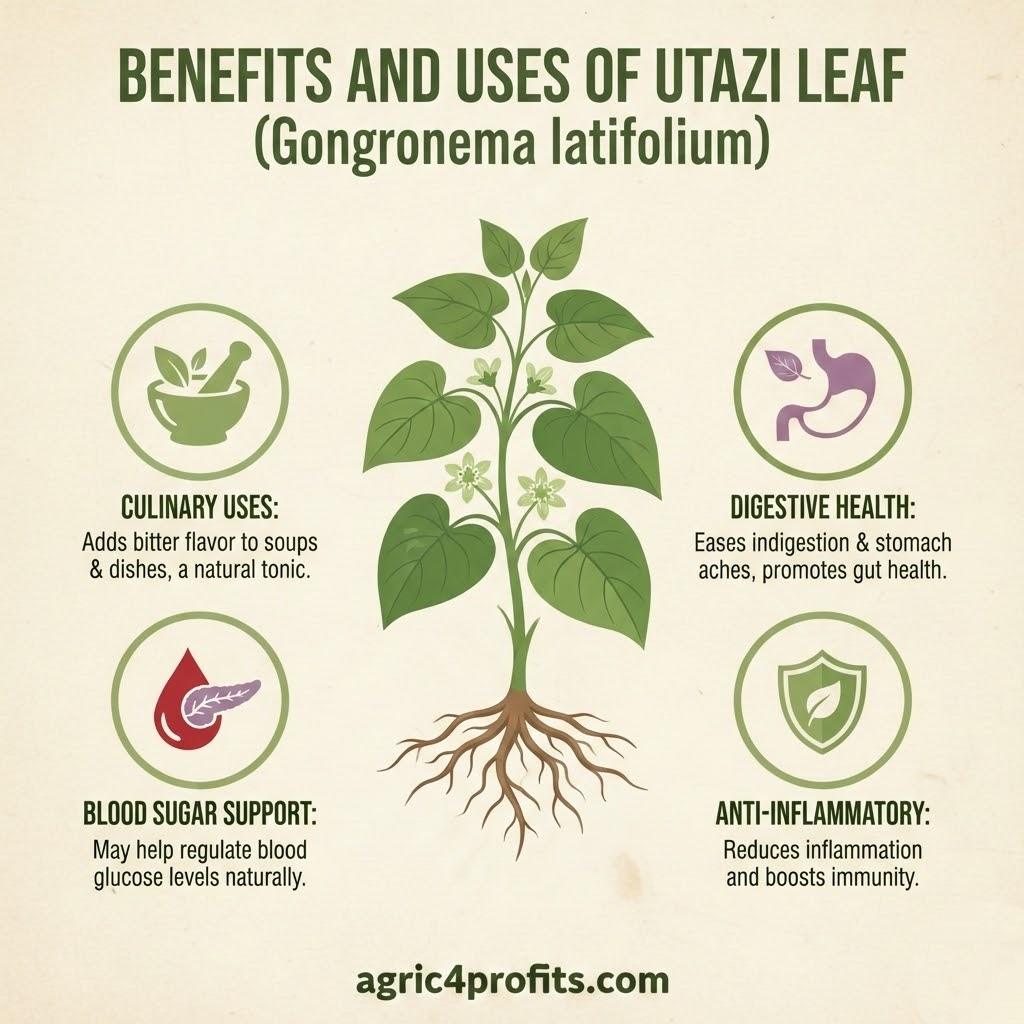 Utazi leaf, known scientifically as Gongronema latifolium, is a popular plant in West Africa, especially in Nigeria. Recognized for its unique, slightly bitter taste and impressive health benefits, it has been widely used in traditional dishes and natural medicine.