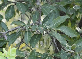 Les feuilles de cet arbre sont simples, alternes, de forme elliptique. Ils sont généralement d’environ 8 cm à 15 cm de long et de 3 à 5 cm de large, avec une marge lisse et un bout pointu.