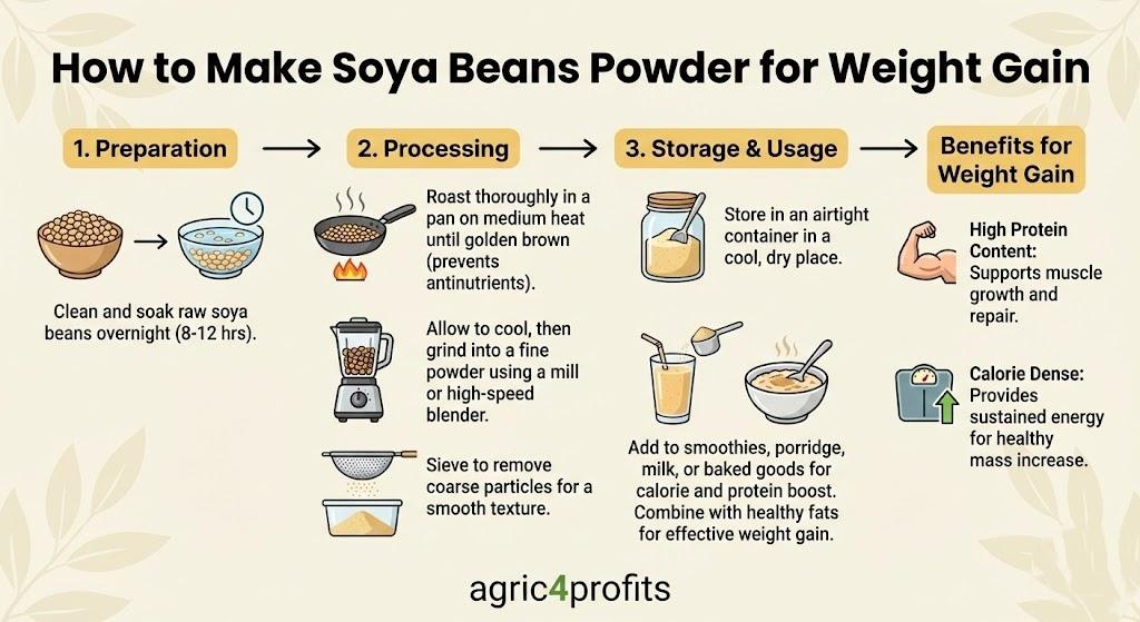 Au Nigeria, faisant de fèves de soja en poudre à la maison est devenue de plus en plus populaire, non seulement parce qu’il est un moyen rentable de consommer cet aliment nutritif, mais aussi parce qu’il offre la flexibilité nécessaire pour personnaliser la poudre en fonction des préférences individuelles.