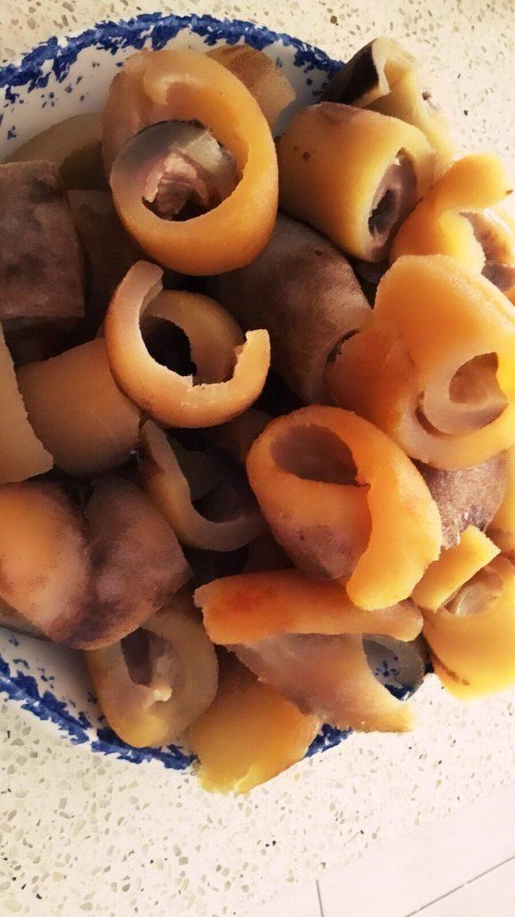 5. Cut the kpomo: Cut the peeled kpomo into small pieces or strips, depending on how you plan to use it in your recipe.